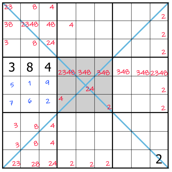 - Knights move constraint: no two squares that are a knight's move apart can have the same digit.